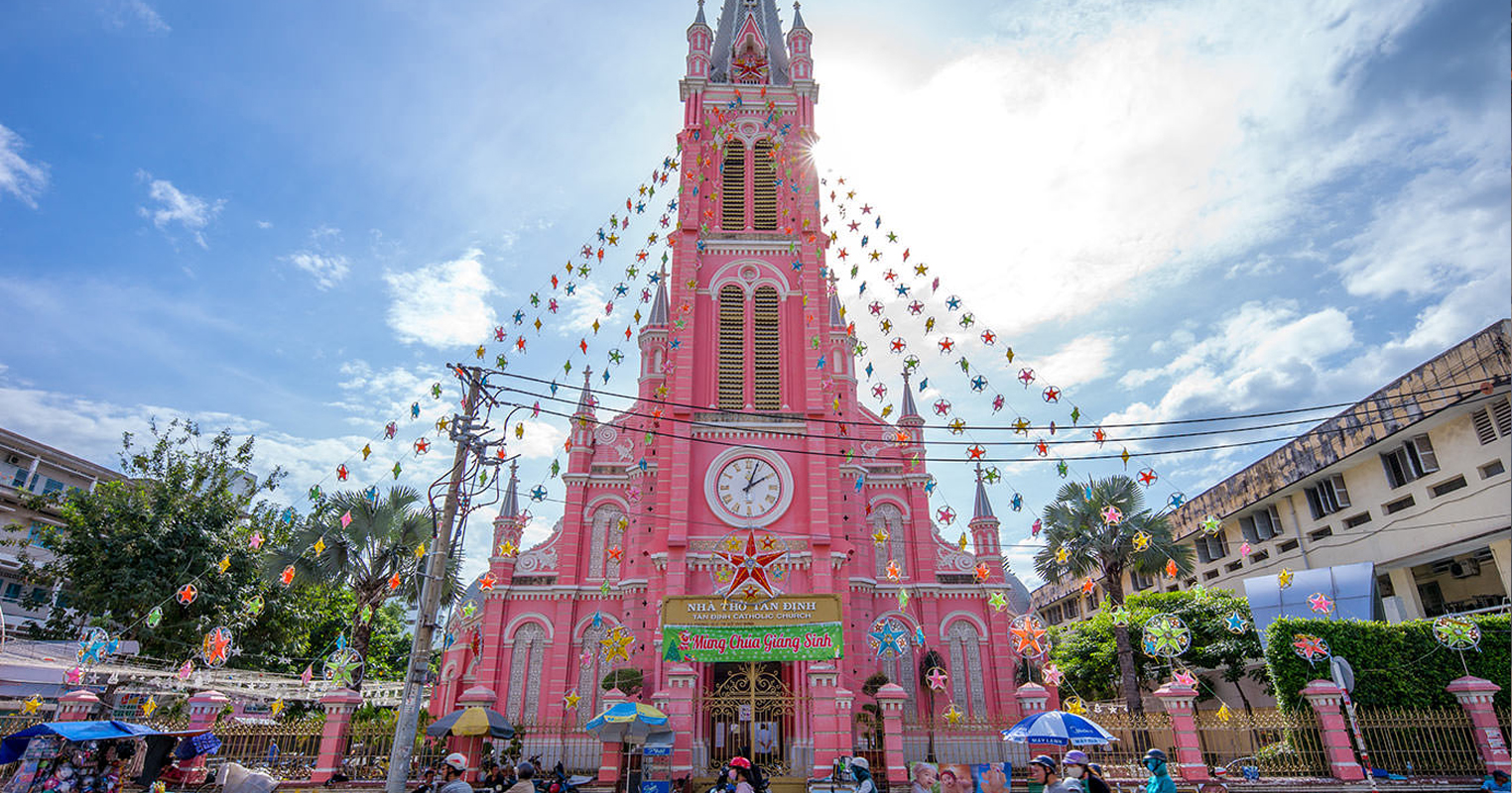 Located on Hai Ba Trung Street in District 3, Tan Dinh Church Saigon is a 10-minute taxi ride from District 1 . Tan Dinh Church Saigon is a Romanian-style church in Ho Chi Minh City, where you can see intricate Gothic and Renaissance elements that have managed to survive Vietnam’s turbulent periods. Built in 1876 and spanning 60 metres in height, it’s widely regarded as the second biggest church in Ho Chi Minh City, after Notre Dame Cathedral. Nearby the gate are two massive bell towers, while the bright pink church is fitted with three beautifully-decorated Italian marble altars.